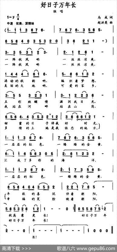 好日子万年长 - 马成|赵洪英好日子万年长作词:马成作曲:赵…