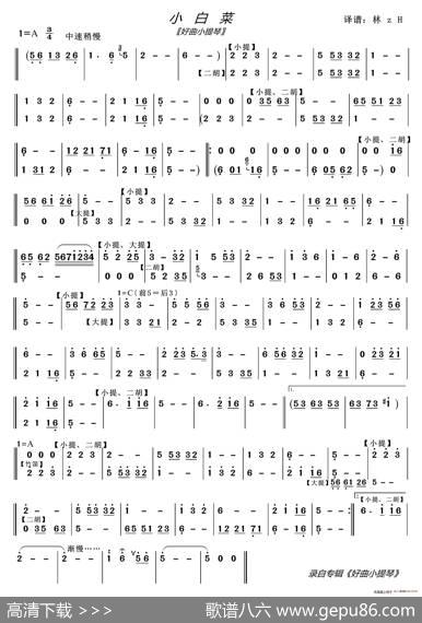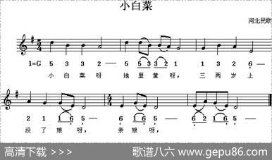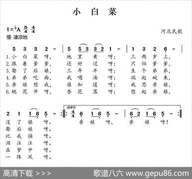 小白菜(线、简谱混排版)小白菜(线、简谱混排版)河北民歌"崔…