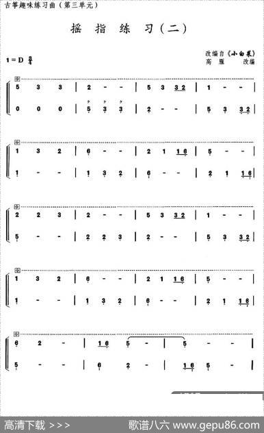 古筝摇指练习(二)(选调《小白菜》)|高雁改编古筝摇指练习(…