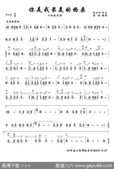 你是我最美的格桑(二胡演奏谱)|阿汝汗你是我最美的格桑(二胡…