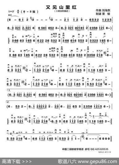 又见山里红(二胡演奏谱)|刘海东又见山里红(二胡演奏谱)作曲…