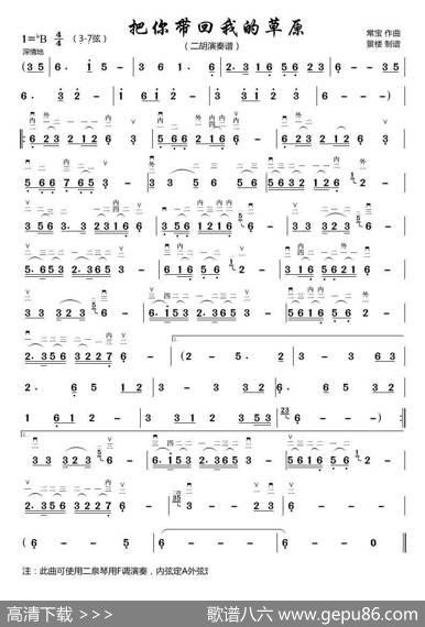 把你带回我的草原(二胡演奏谱)|常宝把你带回我的草原(二胡演…