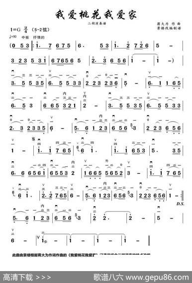 我爱桃花我爱家(二胡演奏谱) - 蒋大为|蒋大为我爱桃花我爱…