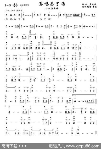 再唱为了谁(二胡演奏谱)|孟庆云再唱为了谁(二胡演奏谱)作曲…