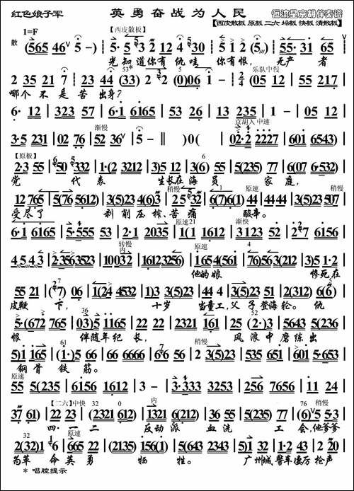 英勇奋战为人民_《红色娘子军》选段、琴谱 英勇奋战为人民_《…