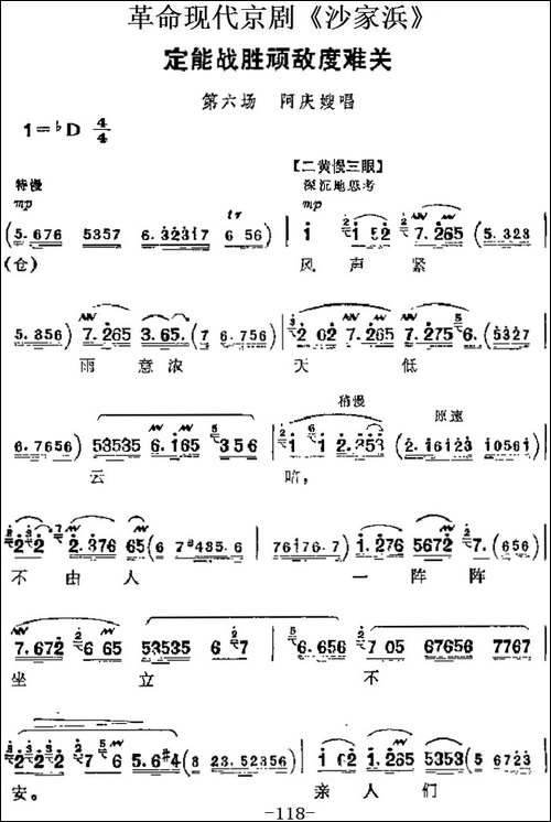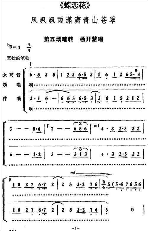 风飒飒雨潇潇青山苍翠-《蝶恋花》第五场暗转-杨开慧唱段-京剧唱谱